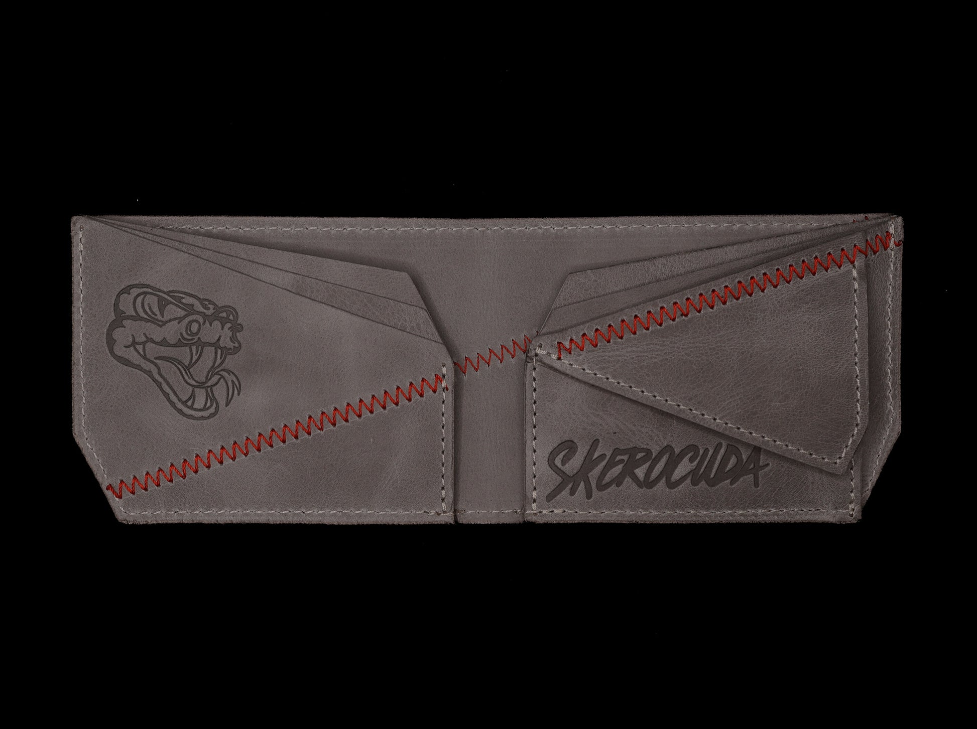 Uvnitř najdeš 8 přihrádek na karty, prostor na bankovky a kapsičku na mince se zapínáním na cvok. Značena raznicí Skerocuda – pečeť pravosti a kvality.